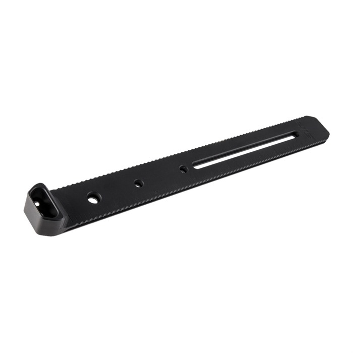 Die Area 419 Arcalock 14” Universelle Dovetail-Schiene mit Barricade Stop verfügt über gezahnte Schienenränder mit einem proprietären Klemmdesign, das sie mechanisch an Ort und Stelle verriegelt, sodass keine Bewegung möglich ist. Die Zahnung an der Schiene ist nicht scharf und beschädigt weder Taschen noch deine Hände.