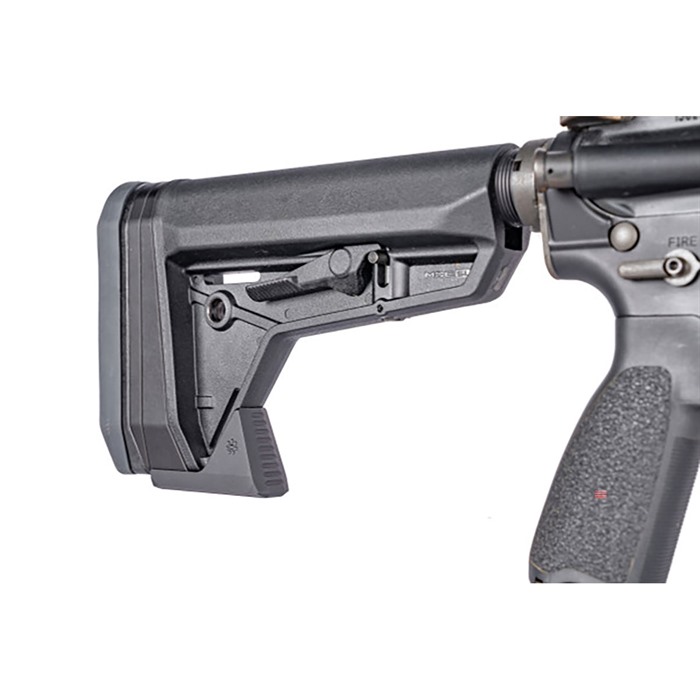 - QD Sling Mount: Eine nach unten gerichtete QD Sling Mount Buchse für den Wettbewerbseinsatz, die es dir ermöglicht, schnell und einfach eine Tasche an der Rückseite des Gewehrs zu befestigen.
