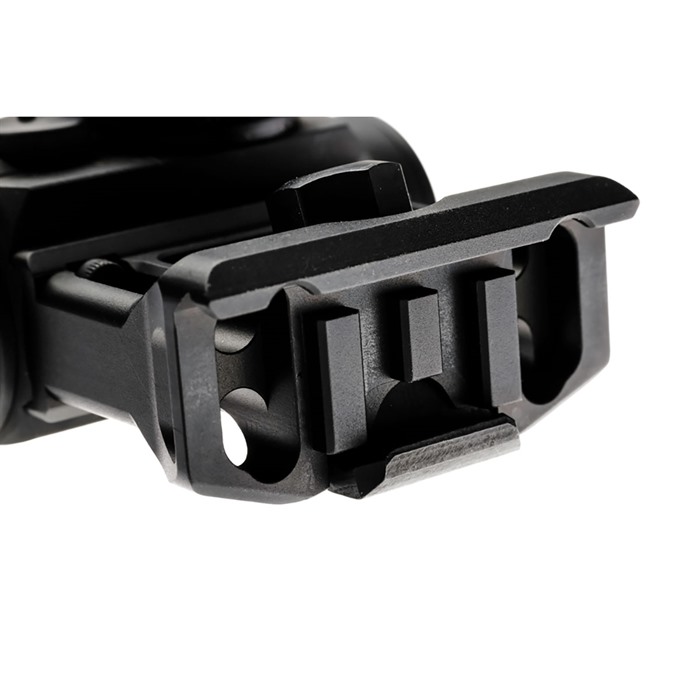 Bei Anwendung einer äquivalenten Last liefert die A/T-Montage ungefähr doppelt so viel Klemmkraft an der Picatinny-Schiene im Vergleich zu einem herkömmlichen horizontalen Interface. (US Patent D973.826 und weitere Patente anhängig)