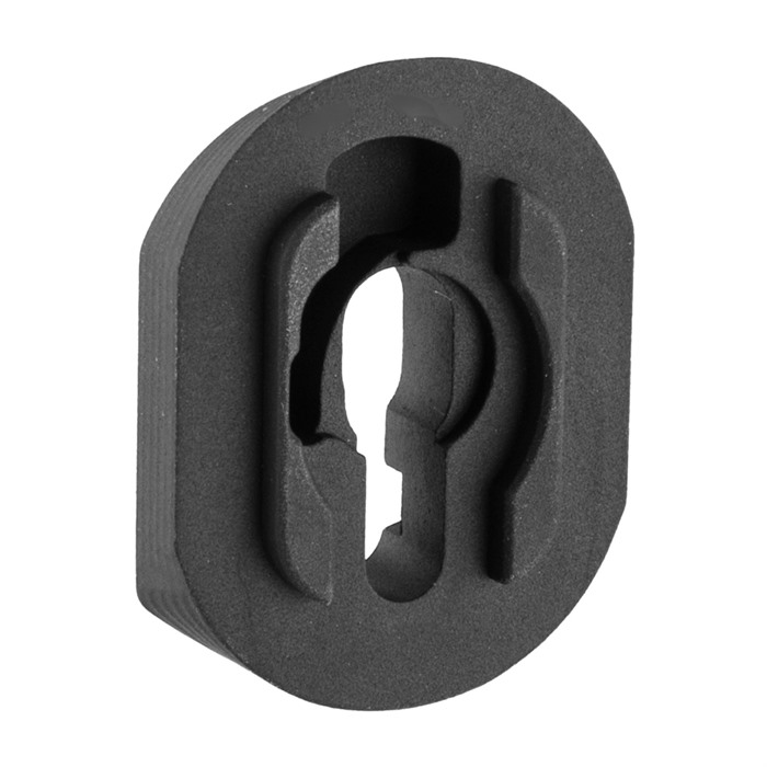 Dieser Adapter ist aus 6061 Aluminium gefertigt und verfügt über eine harteloxierte Oberfläche, die militärischen Spezifikationen entspricht. Der Aluminiumadapter wird mit einem maßgeschneiderten Befestigungselement verbunden, das aus robustem 4140 Stahl gefertigt ist und die Anbringung des SGA-Schafts ermöglicht.
