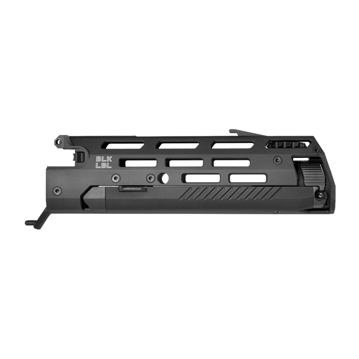 THE MOST RADICAL NEW-CONCEPT BIPOD EVER Balanced. Integrated. Accurate. The BLK LBL Bipod’s innovative barrel-through design allows the rifle to sit ‘in’ the bipod, rather than ‘on’ it, with the center of rotation of the bipod effectively centered on the bore, making it inherently more stable. The result is a balanced rifle without the top-heavy tendencies that can come from large optics. The ball and socket joint provide fluid movement for improved target acquisition and accuracy. With 40 degrees of pan and 15 degrees of cant in each direction, adjusting leg length to level your scope is a thing of the past. BLK LBL was borne out of the question: Why is something as practical as a bipod still an impractical attachment? When not deployed, the legs of the BLK LBL Bipod easily fold to the rear, flush with the hand guard. This means they won’t catch on clothing, gear or branches when you’re on the move, and won’t interfere when shooting off hand, from a barricade, or even when storing your rifle. A Passion for Precision With improved accuracy, lightweight construction, added stability and an expanded range of motion, the BLK LBL Bipod is the new pinnacle of bipod technology. Whether you’re in law enforcement, the armed forces, a sport shooter or hunting in the great outdoors, this bipod gives you exactly what you’re looking for; improved performance. Competitive & Sport Shooters: The BLK LBL Bipod provides improved accuracy and proven stability in all sport shooting competition situations, while the stowed bipod legs won’t interfere when on the move or shooting offhand. Outdoorsmen & Hunters: The integrated design of the folding BLK LBL Bipod means no more catching your bipod legs on heavy brush or branches, your clothes or even your rifle case when stowing. Plus the added stability and accuracy means more precise shots, which means more accurate, more ethical kills. Law Enforcement & Armed Forces: Safety, stability and control. It applies to law enforcement, as well as the BLK LBL Bipod. Of course, improved accuracy means fewer rounds expended, which results in a quicker, safer resolution of situations where protecting citizens and ensuring public safety is of primary importance. Whether it’s the stability only a bipod can provide from a set firing position, or easy handling in close quarters, the integrated design of the BLK LBL Bipod gives soldiers and their fireteam added confidence and effectiveness in nearly any situation. Durable aluminum handguard with the finest integrated bipod available. Made for the IWI X95 We make two lengths, SHORT for 16.5"" barrels, and LONG for 18.5"" barrels. Both the handguard and the legs are longer on the LONG version. SHORT - 209mm/8.2"" long, 478g / 16.8 ounces, Legs extend from 6"" to 9"" LONG - 248mm/9.7"" long, 526g/ 18.5 ounces, Legs extend from 8"" to 11.5"" 40 degrees of Cant rotation