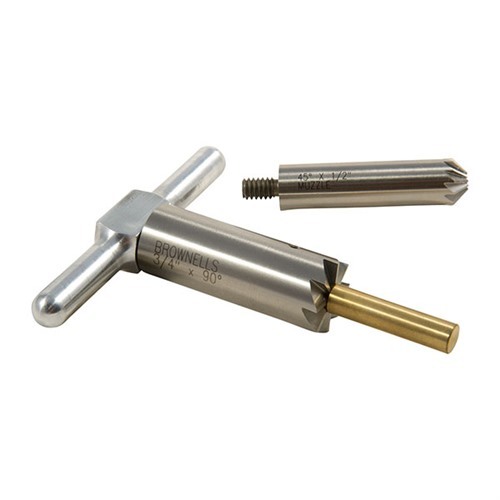 050806022676 Das Set umfasst: einen 90° Fräser, um eine Mündung nach dem Kürzen zu planen oder Schäden zu reparieren; einen 45° Entgrater, um die Kanten der Züge für einen sauberen Geschossausgang zu brechen oder den Mund eines Revolverzylinders für schnelle Nachladevorgänge zu entgraten; sowie einen Griff, der zu jedem Fräser passt, und einen Messingbohrpilot. Der austauschbare Pilot sorgt dafür, dass der Fräser richtig ausgerichtet bleibt. Kaufe zusätzliche Piloten, um einen Fräser für viele verschiedene Kaliber zu verwenden. Piloten für andere Kaliber sind separat erhältlich.Nachbestellt, Lieferzeit ca. 4-12 Wochen aus dem Großlager.