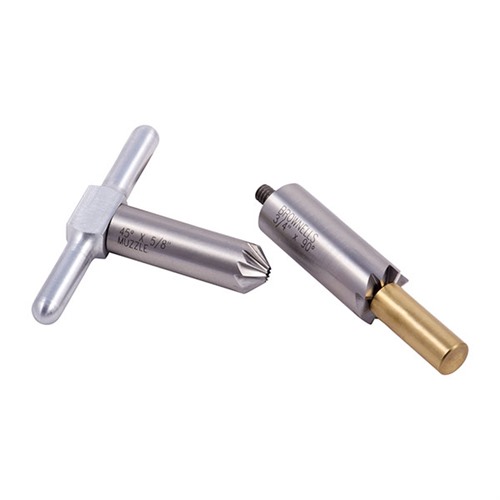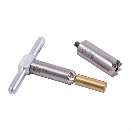 050806012813 Das Set umfasst: einen 90° Fräser, um eine Mündung nach dem Kürzen zu planen oder Schäden zu reparieren; einen 45° Entgrater, um die Kanten der Züge für einen sauberen Geschossausgang zu brechen oder den Mund eines Revolverzylinders für schnelle Nachladevorgänge zu entgraten; sowie einen Griff, der zu jedem Fräser passt, und einen Messingbohrpilot. Der austauschbare Pilot sorgt dafür, dass der Fräser richtig ausgerichtet bleibt. Kaufe zusätzliche Piloten, um einen Fräser für viele verschiedene Kaliber zu verwenden. Piloten für andere Kaliber sind separat erhältlich.Nachbestellt, Lieferzeit ca. 4-12 Wochen aus dem Großlager.