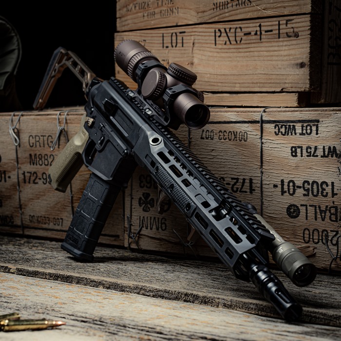 - Kompatibilität: Der BRN-180M ist vollständig kompatibel mit Mil-Spec Lower Receiver Teilen und Abzügen.