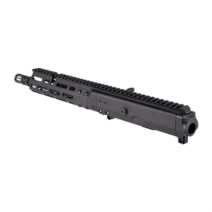 BRN-180® Upper Receiver Group Gen2 – Reliable Piston System Made Even More Versatile Designed in conjunction with PWS & FM Products, the Brownells BRN-180® Complete Upper Receiver is inspired by the Armalite® AR-180 of the 1960s. Developed as a successor to the original AR-15, the AR-180 was a civilianized version of the AR-18, itself an upgrade on the M16 platform. The BRN-180® incorporates many of the AR-18/AR-180 improvements - including its robust and reliable gas piston operating system. (Yes, the originators of the AR-15 / M16 eventually embraced a piston!) The BRN-180® Gen2 Upper Receiver Group improves upon the original BRN-180 with two main upgrades. First, all BRN-180® Upper Receivers now ship with an Adjustable Gas System, previously only found on the BRN-180S®. The operating mechanism, the short stroke gas piston concept remains the same, but the user can select between two settings, depending on their conditions and ammunition, to ensure smooth and consistent function. No more spare gas piston cup to worry about. In addition to the new Adjustable Gas System, the Handguard is now retaining with a single locking screw. This large screw provides ample locking force and ensures a more consistent handguard lockup than the previous mechanism. During extended firing, and the barrel heating up, this new locking system ensures the handguard retains alignment and rigidity with the upper receiver. Also, with this new takedown mechanism, the handguard can be removed to access the gas system without removing the internal components. Like the original, the BRN-180® bolt carrier rides smoothly on a PAIR of guide rods. The carrier is buffered at the rear by a built-in polymer buffer with a molded-in steel plate that captures the guide rods. The Nitride bolt replicates the original AR-180 bolt design, right down to its use of a standard AR-15 extractor. Wait - we know what you're dying to ask. Yes, the BRN-180® upper receiver is fully compatible with any standard, mil-spec AR-15 lower receiver. The 16" or 18.5” barrel is machined from extra-strong 4150 carbon steel, with a hard Nitride finish that really resists surface wear. The BRN-180™ is chambered in .223 Wylde - for extra flexibility in ammo choice - with 1-8" rifling, so it handles both .223 Remington and military-type 5.56mm NATO ammo with equal aplomb. Up front there's a replica of the AR-180's unusual three-prong flash hider: the hemispherical bottom prong helps prevent the muzzle blast from kicking up a dust signature when shooting prone. Standard ½-28 tpi muzzle threads let you swap on a modern AR-15 muzzle device should you be bitten by the customizing bug. Ultra-reliable AR-180 piston operating system Compatible with current mil-spec AR-15 lowers Machined 7075 T6 aluminum receiver & handguard - hardcoat anodized finish 16" or 18.5” barrel with matte black Nitride finish .223 Wylde chamber Button rifled bore; 1-8" twist ½"-28 threaded muzzle Replica 3-prong AR-180 flash suppressor Molded polymer ejection port cover Total weight: 4.65 lbs We recommend the use of C-Products Duramag and/or Unimag for best results in our 7.62x39 variant.