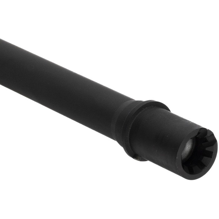 - Der Mündungsbereich hat ½-28 Gewinde, sodass er den standardmäßigen A2 Flash Hider, der auf dem M27 zu finden ist, oder jedes gängige Aftermarket AR15 Mündungsgerät akzeptieren kann.