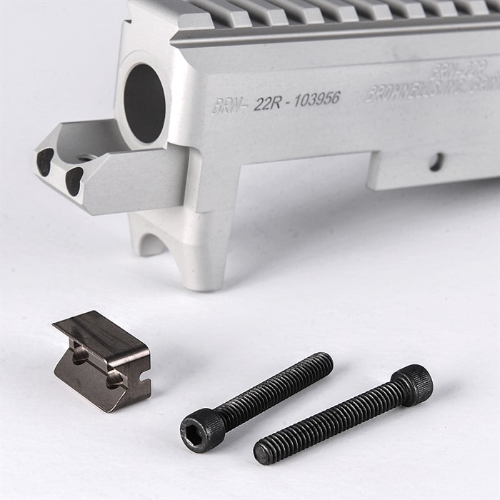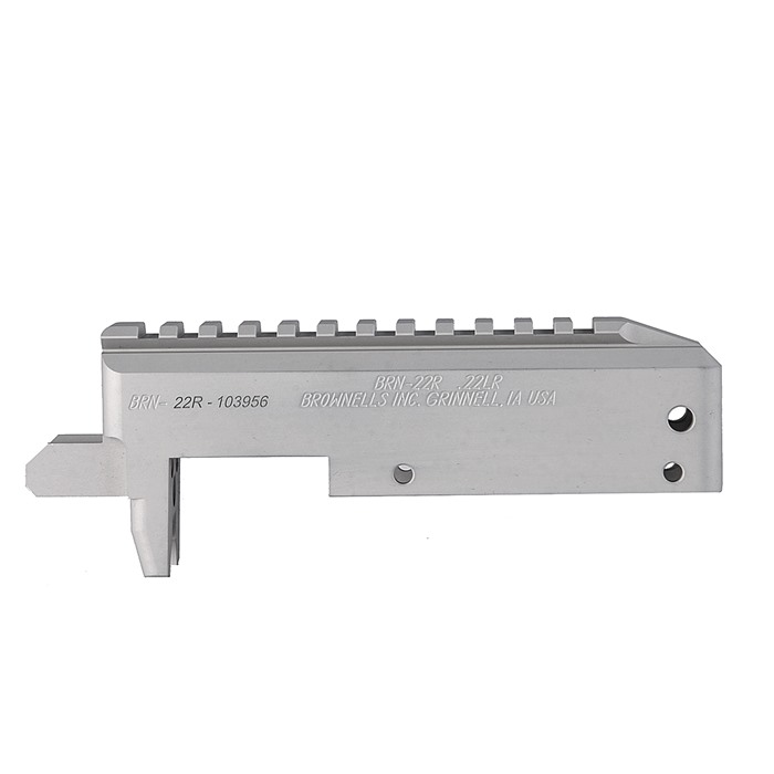 The Brownells BRN-22 Receiver is ready to be the foundation of your custom rimfire rifle build - at price never before seen on a target receiver. Even better, the BRN-22 is fully compatible with the ever-popular Ruger® 10/22®, so you can choose from the vast array of barrels, stocks, triggers, and other custom components for the 10/22® platform. Each BRN-22 receiver is precision-machined from 6061 aluminum billet to exacting tolerances. Why machined instead of forged, like most commercial receivers? All you need to do is look inside at the smooth, clean interior to realize that a machined receiver can be held to much tighter tolerances for a precise fit with other parts. After machining, BRN-22 receivers get a tough matte black Type 2 hardcoat anodized finish (similar to the finishes found on many AR-15 receivers) that blends with most barrel and 10/22® trigger module finishes. There’s even a pre-drilled cleaning rod hole at the rear of each Brownells BRN-22 receiver for easy cleaning of the bore from the chamber, the PROPER way to prevent cleaning rod from damage to the muzzle crown that can compromise accuracy. Stripped receiver only Comes with V block and screws Machined from high-grade 6061 T6 aluminum billet Durable matte black hardcoat anodized finish Compatible with all components that fit a factory Ruger® 10/22® Cleaning rod access hole at rear Barrel and receiver sold separately - Click here to see separate listing FFL or delivery to an FFL holder required for purchase The Railed BRN-22R has an integral Picatinny top rail for extra security and versatility in scope mounting. Get a BRN-22 stripped receiver today and start planning your rimfire rifle Dream Gun™. At these prices, why not get several? The possibilities are endless! Due to varying dimensions in aftermarket and some older factory aluminum trigger housings, fitting may be required. The BRN-22 receivers are designed to work in conjunction with Ruger® 10/22® OEM bolts, and as such may not work with all aftermarket bolts.