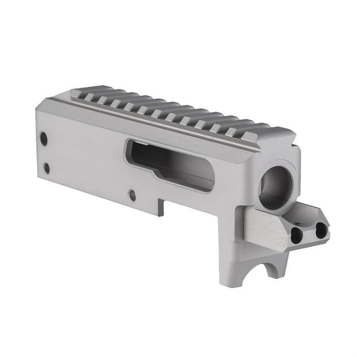 Jeder BRN-22 Receiver wird präzise aus einem 6061 Aluminium-Billet nach strengen Toleranzen gefertigt. Warum maschinell bearbeitet und nicht geschmiedet, wie die meisten kommerziellen Receiver? Alles, was du tun musst, ist einen Blick ins Innere zu werfen, um die glatte, saubere Innenfläche zu erkennen, die zeigt, dass ein maschinell bearbeiteter Receiver viel engere Toleranzen für eine präzise Passform mit anderen Teilen haben kann.