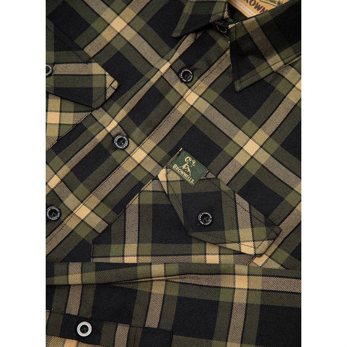 BROWNELLS PATERSON MEN’S FLANNEL LONG SLEEVE SHIRT FEATURES: Center box pleat for better range of motion and extra comfort in the chest, back, and shoulders without affecting the size or fit Microfiber cloth inside the bottom left corner to easily clean your glasses or devices without affecting the look or design Hanging loop just above the neck label for easy hanging on most racks and hooks Mitered edge on the chest pockets and sleeve cuffs for a tailored and designer finish Hidden collar-stay buttons to keep the collar held in place Signature D-Tech™ blend minimizes shrinking, wrinkling, and never needs ironing or dry cleaning Full snap button closure Button sleeve cuffs Dual snap button flap chest pockets Brownells brand tag on the left chest pocket Machine wash cold with like colors Hang to dry or tumble dry on low, do not iron Signature D-Tech™ polyester blend Relaxed Fit (Runs Big)