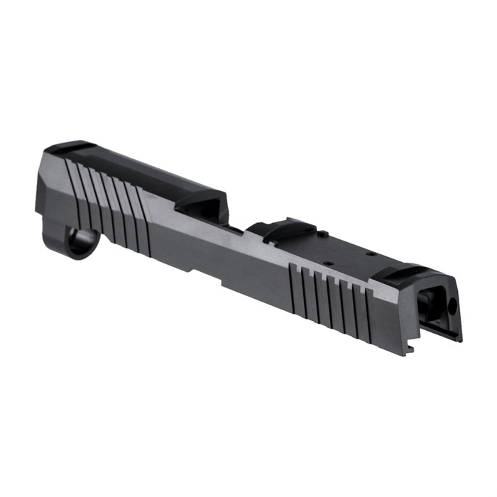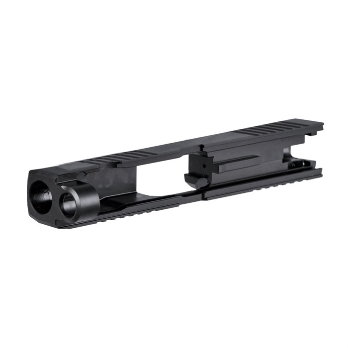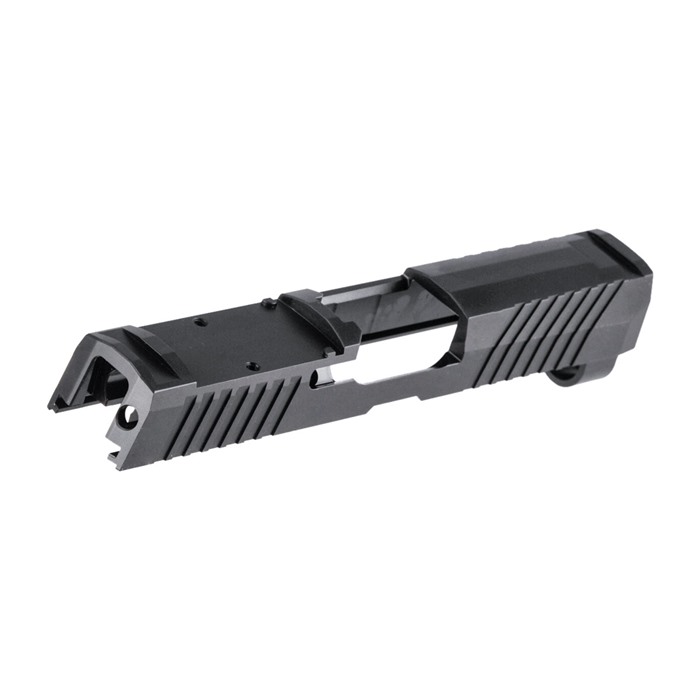 Optic-Ready, Ergonomically Enhanced Slide With a Bundle of Custom Features Our RMR Slide for Sig P320 Compact pistols features distinctive, wraparound front cocking serrations that aid in manipulating the slide to check the chamber or clear a jam. (OK, we’ll admit it: the serrations just look cool, too.) It also comes with a pre-cut slot for easy, secure mounting of a Trijicon RMR or Holosun red dot sight. All RMR Slides also have standard Sig Sauer P320 factory front and rear sight dovetails for "iron" backup sights. To get proper co-witnessing with the RMR, you will need to also install suppressor-height iron sights. You can also get your Brownells RMR Slide for Sig P320 Compact with a "window" cutout on top that enhances airflow to keep the barrel cool - ideal for hard-working action competition pistols. Plus, if you have an upgraded barrel with a contrasting finish or a unique exterior pattern (fluting, spirals, "flames," etc.) the window lets you show it off a bit! Each RMR Slide for Sig P320 Compact starts life as a billet of 17-4 stainless steel that is machined to Sig Sauer factory specifications inside, so it’ll fit factory frames and accept factory or aftermarket barrels and factory internal parts. Slides are heat-treated to Rc 41-44 on the Rockwell C scale for added surface hardness and wear resistance. Machined from corrosion-resistant 17-4 stainless steel billet Trijicon RMR mounting slot Also accepts Holosun HE508T, HS507C & HS407C red dot sights Plus factory front/rear sight cuts Available with distinctive top Window cutout or traditional Solid top