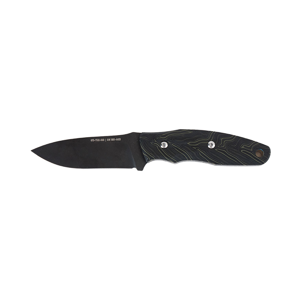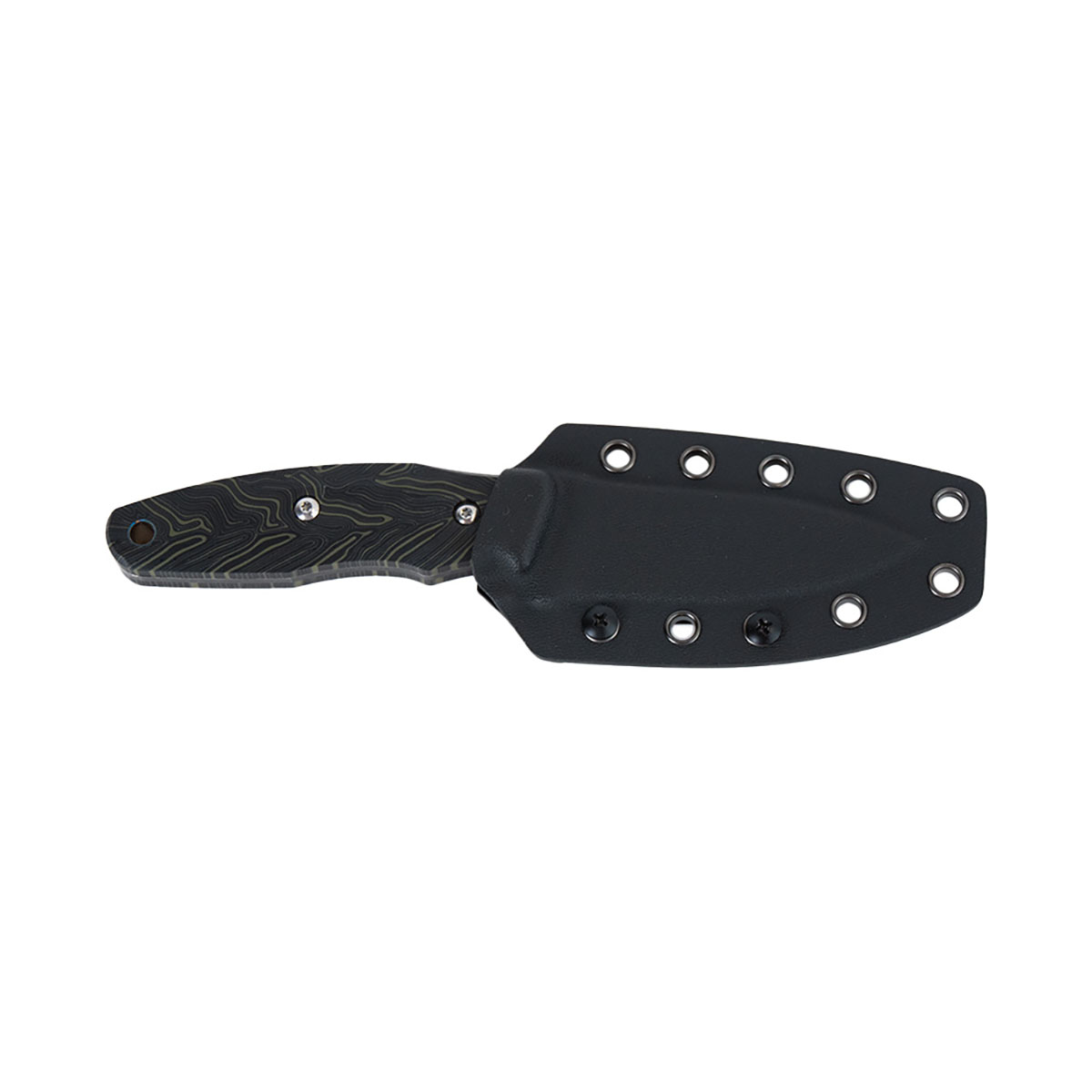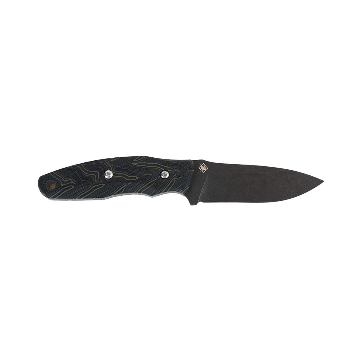 Der Griff besteht aus G10-Verbundmaterial, einem robusten Material, das auch bei nassen oder schmutzigen Bedingungen griffig bleibt. Er verfügt über ein stilisiertes topografisches Kartenmuster, das ein von der Natur inspiriertes Design hinzufügt und gleichzeitig den Grip und die Kontrolle verbessert.