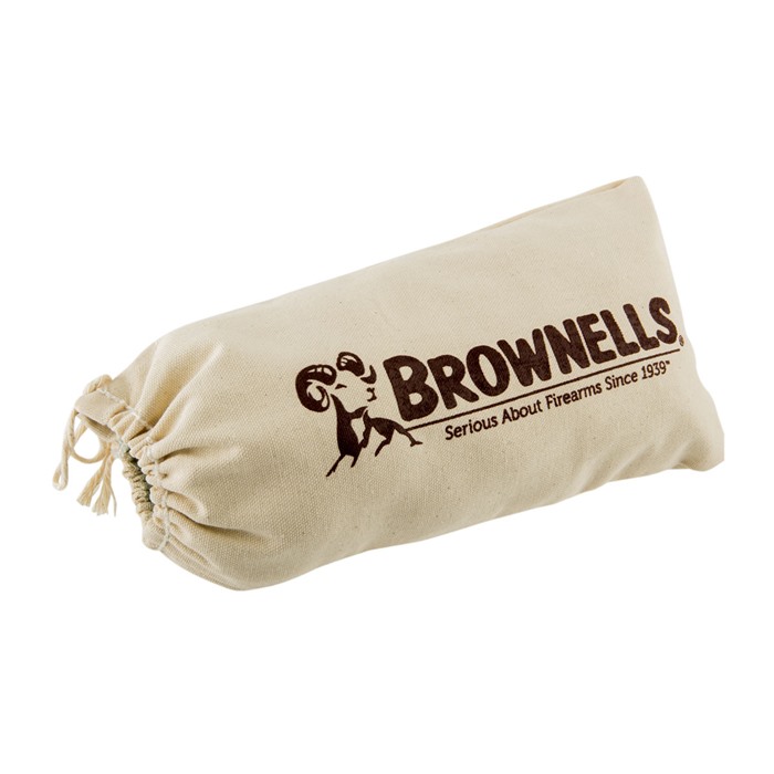 Robuster als die Standard-Schießsäcke der Vergangenheit, verfügen sie außerdem über einen integrierten Kordelzug für einen schnellen und einfachen Verschluss, falls du das Nähen der Enden nach dem Füllen nicht magst. Das attraktive Siebdruckdesign auf einer Seite zeigt das Brownells-Widder-Logo und das Markenzeichen.