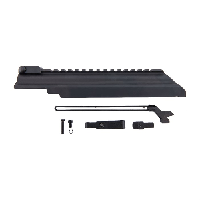 Die ingenieure Gen 3 Dog Leg Scope Rail nutzt eine nach vorne klappbare, schnell abnehmbare Abdeckung mit einem hinteren Cam-Lock, um die Feldzerlegungsfähigkeiten der AK zu bewahren. Mit einem Takedown-Pin hinter dem Hauptscharnier kannst du die Rail vom Gewehr abnehmen, ohne das Zielfernrohr abnehmen zu müssen.