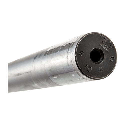 Shilen-Läufe, ob aus Chrom-Moly oder Edelstahl, sind mit acht Zügen und Feldern durch das Cold Forming-Verfahren unter Verwendung von Hartmetallformen, die in Shilens eigenem Werk unter den strengsten Kontrollen hergestellt werden, geriffelt. Diese Riffelungsmethode erreicht eine extrem enge Innenuniformität vom Patronenlager bis zur Mündung. Fertige Läufe werden luftdruckgeprüft (Luftdruckempfindlichkeit beträgt .00005" - fünf Hunderttausendstel!) und mit einem 6-fach Endoskop inspiziert. Alle Läufe, von .22 bis .30 Kaliber, haben Toleranzen von .0005" und eine Uniformität von .0003". Es erfolgt keine Begradigung, und alle Läufe werden vollständig spannungsarm geglüht. Alle Edelstahl-Läufe werden im Werk von Hand geschliffen.