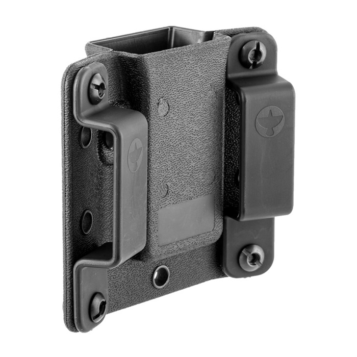 The Copia magazine carriers are premium, duty-grade, injection-molded magazine carriers designed for hard-use, daily concealed carry. Their innovative cavity design and retention system allows them to be used ambidextrously with the double-stack magazines of nearly 100 different handgun models chambered in 9/40/357 Sig. They are available in singles or doubles, and have a body-hugging contour which is not only more comfortable than traditional magazine carriers; it is also more concealable. Shooters can also select between the standard tall body-style, which is compatible with all of Raven Concealments modular belt attachments, or short body-style which only works with their closed loops and QMS. Finally, you can buy one pistol magazine carrier that will work with nearly all the handguns in your collection! Just some of the models we have found to fit the Copia are: Glock 9/40 Smith & Wesson 9/40 Sig Sauer 229, 226, 320 CZ P-09, P-07, 75B Heckler & Koch VP9, P30, P2000 Beretta M9, 92, 96, PX4 FN FNP, FNX, FNS 9 Springfield Armory XD 9/40, XDM 9/40 Styer 9/40 Browning Hi-Power