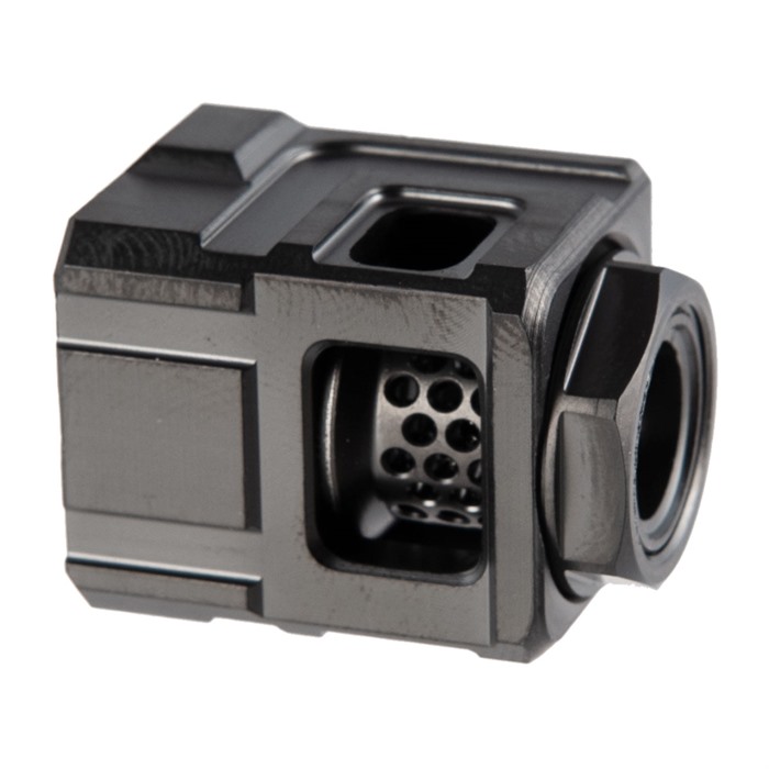 Dieser Qube-Kompenator für deine Glock ist das erste Mündungsgerät für Pistolen auf dem Markt, das keine Schrauben zur Befestigung benötigt. Stattdessen verwendet dieses System ein drehmomentbasiertes System, um sicherzustellen, dass es an Ort und Stelle bleibt, was zu weniger Teilen führt, die sich während des Schießens lösen oder verloren gehen können. Jeder Qube-Kompenator ist so konzipiert, dass er zu vielen der heutigen beliebten Glock-Pistolermodelle passt, einschließlich der G17, G19, G19X, G26, G34 und G45, solange die Waffen mit Gewindelauf ausgestattet sind. Der Kompenator kann entweder mit 1/2-28 oder M13.5-1LH Gewinden geliefert werden, die zum Waffengewinde passen. Diese Halterung bietet ein Kegelverriegelungssystem, das sicherstellt, dass der Kompenator sich bei längeren Schussfolgen nicht dreht. Jeder Qube-Kompenator misst 1,25 Zoll in der Länge, 0,825 Zoll in der Höhe und 1 Zoll in der Breite. Das Mündungsgerät ist aus 17-4H900 Edelstahl gefertigt und wiegt 2,4 Unzen.Vom Hersteller aus dem Programm genommen