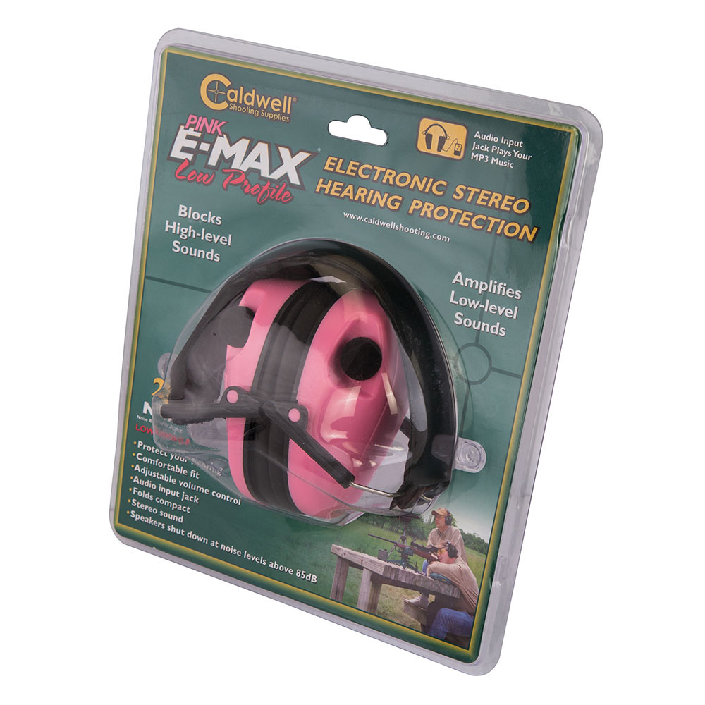 661120871118 Die Pink Low-Profile E-Max® Gehörschutzkombination vereint großartige Schaltungstechnik mit einem flachen Ohrpolster, das ideal für Schrotflinten- und Action-Schützen ist. Die zwei Mikrofone im E-Max® verstärken Geräusche unter 85 Dezibel, was die normale Kommunikation, Range-Befehle und Umgebungsgeräusche verstärkt. Über 85 Dezibel schalten sich die Mikrofone für einen kurzen Moment ab, um das Gehör des Schützen zu schützen. Zwei Mikrofone – eines in jeder Kuppel – bieten dem Benutzer echten Stereo-Sound und ermöglichen es, die Richtung der Schallquelle zu identifizieren. Enthält einen integrierten Audioeingang, über den Musik abgespielt werden kann. Läuft mit 2 AAA-Batterien (nicht enthalten). 23NRRNachbestellt, Lieferung vom Hersteller überfällig.