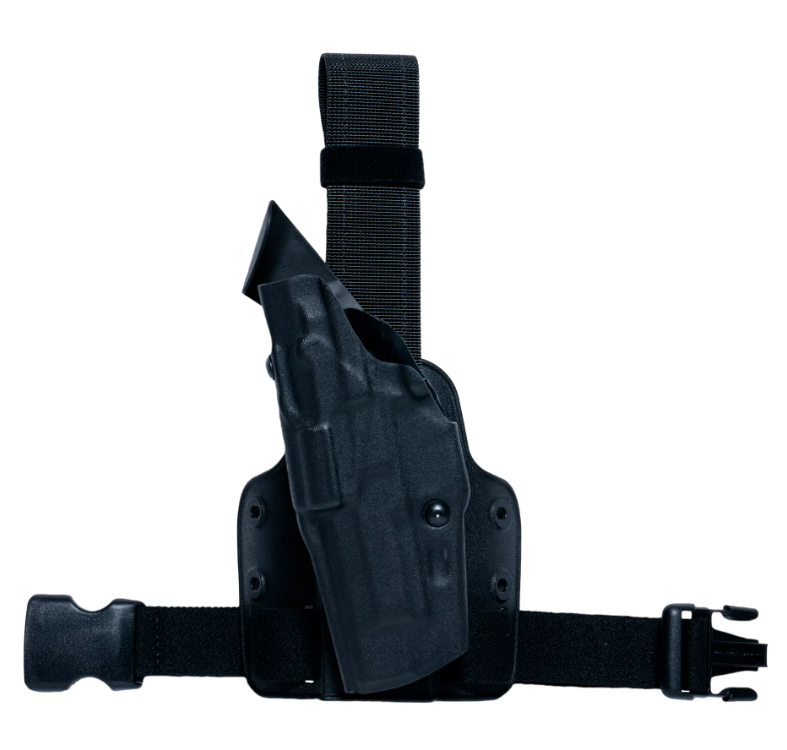 - Achten Sie darauf, dass das Holster richtig am Oberschenkel befestigt ist, um ein Verrutschen während des Gebrauchs zu vermeiden.