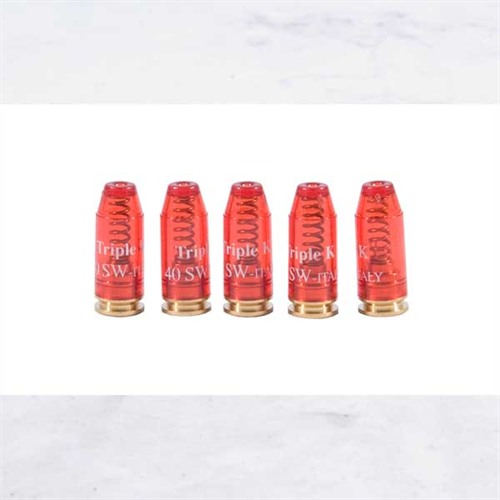 Die federbelasteten „Zündhütchen“ in diesen Snap Caps funktionieren ähnlich wie echte Zündhütchen und dämpfen den Schlag, sodass Schäden an Schlagbolzen und Buchsen vermieden werden. Die leuchtenden Farben und das „andere“ Gefühl verhindern, dass sie mit echten Patronen oder Funktionsprüfungs-Dummies verwechselt werden. (Verwende Snap Caps nicht als Dummies - sie duplizieren nicht das Gewicht/Gleichgewicht einer geladenen Patrone.)