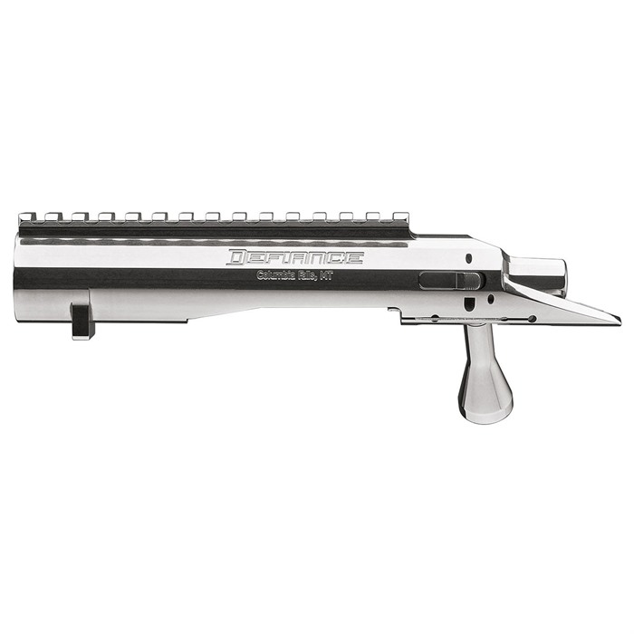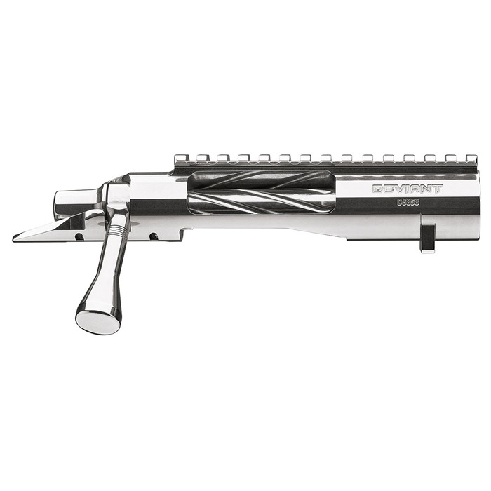 Like the Deviant Tactical, the Elite has an integral scope base and recoil lug and is perfect for competition. Defiance has added some unique features, such as the extended front scope rail, barrel threads and bedding surface while maintaining the Rem. 700 Short action footprint. Also new, the Elite controlled round feed bolt utilizes a coned breech and plate extractor for smooth reliable feeding. Lastly, the enhanced firing pin reduces vibrations and reduces bolt lift.