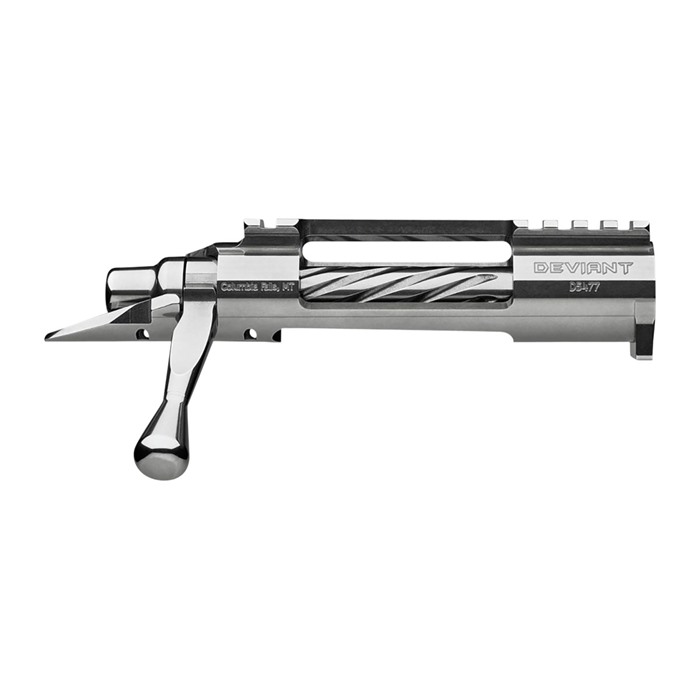 Jede Deviant Hunter Action ist mit einem einteiligen Bolt aus 4340 Chrom-Moly-Stahl ausgestattet. Die Laufgewinde sind für die Verwendung mit Remington 700-Stil-Läufen konzipiert, und die integrierte Scope-Montage bietet 20 MOA an eingebauter Erhöhung. Außerdem verfügt die Action über einen integrierten Rückstoßlappen.