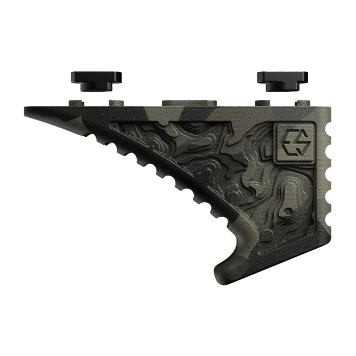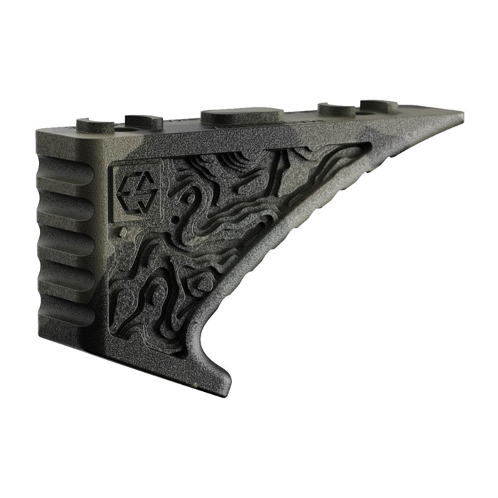 The ESD EFG (Enhanced Fore Grip) was designed to ease end-users ability to control their rifle, mitigate recoil, and have faster, more accurate follow-through. From the angle of the ESD EFG to the width, it’s made with human-centered design in mind. Its angle allows your wrist to be better aligned with your forearm thus strengthening your overall grip. The width of the ESD EFG fits perfectly with the length of the proximal flange of a user’s hand. This is important because it means your fingers are getting a more consistent and reliable grip than that of standard rifle grips. The ESD EFG has grooves all along the main curve and on the back of the grip. This allows for more consistency when your hands are wet or while wearing gloves. The grooves and the flat wall on the back section of the ESD EFG allow for more stability in unconventional shooting positions and on barricades. The hook on the bottom of the ESD EFG helps maintain a consistent placement of your hand without the risk of slippage during sustained fire. The hook also benefits the end-user when utilizing barricades to help capture and stabilize the firearm. The ESD EFG is made up of a Nylon material designed to withstand significant amounts of force and high temperatures. The material is known for taking abuse and when broken it tears vs cracking. This is important because if you do manage to damage your EFG it won’t be rendered useless and will allow you to finish the job at hand. The ESD EFGs are manufactured in Ranger Green, Flat Dark Earth (FDE), and Multicam are all cerakoted by friends at Weichel Coatings. ESD found their coatings to be the most consistent, and color and camo accurate. The ESD EFG is also compliant with firearms that are classified as pistols and is not classified as a vertical grip.