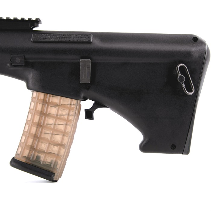 Quick magazine changes are now attainable! This Extended Magazine Release is simple to install and has a seamless fit with STEYR AUG® Standard stocks. The large surface area of the lever is easy to reach and provides better ergonomics for magazine changes. FEATURES Compatible with A3 M1 (Standard Stock ONLY) Enclosed Slave Pin Aluminum material for Increased Durability Oversized lever for accessibility Limited Lifetime Warranty