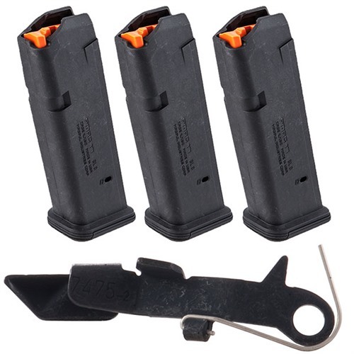 The PMAG 17 GL9 is a 17-round magazine featuring durable polymer construction, paint pen dot-matrix for labeling, tool-less floor plate removal for ease of maintenance, and a visible capacity indicator hole on the body. The PMAG 17 GL9 is compatible with all full-size 9mm Glock handguns, as well as compact and sub-compact variants with some protrusion below the grip. Drop-in replacement for factory slide release lever has a much larger finger pad and a trapezoid-shaped bump that help ensure you release the slide fast, on the first try, after a reload. Saves precious seconds that can be lost making multiple swipes to release the slide and chamber the next round. Low profile and smooth contours will not affect holster fit or snag on clothing. Rugged, all-steel construction; matte black finish matches Glock factory finish. Separate models to fit current-production 3-Pin and early 2-Pin pistols