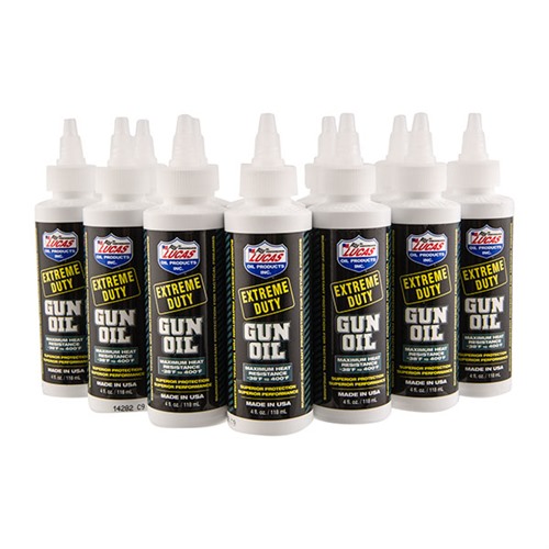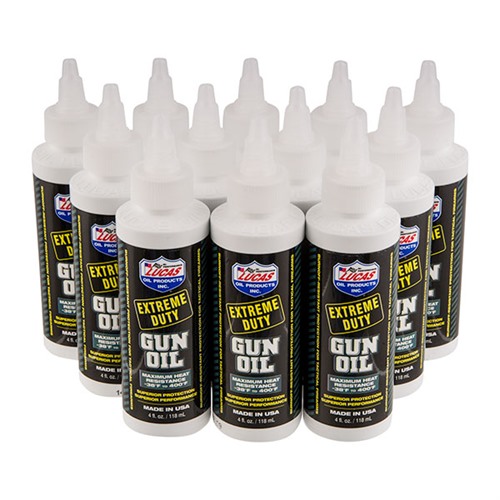Used and recommended by major firearms manufacturers, Lucas Extreme Duty Gun Oil is specially formulated for high volume, high heat and friction firearms and was designed for full auto firearms, SBRs and suppressors as well as semi-auto rifles, shotguns and pistols. It offers superior burn-off, shock and heat resistance, unlike any other multi-purpose gun oil. A unique additive keeps the oil from running and migrating while the polymeric film protects from rust, wear and moisture and resists carbon, lead and copper fouling and dramatically reduces wear during all shooting conditions. Applying Lucas Extreme Duty Gun Oil to bores, bolt carriers and gas pistons makes clean-up of powder residue, copper and carbon fouling a much easier task. Apply a light coat to suppressor baffles, mounts, muzzle breaks and flash hiders to resist carbon build up and to make cleaning quicker and easier. It neutralizes acids from fingerprints and resists drying for long term storage use. Developed for demanding lubrication during hard use. Extreme working temperature range of -38°F to 400°F. Great for ultra-sonic cleaner use for small or bulk parts lubrication. Superior blow back resistance, keeping oil out of your face and off your glasses.