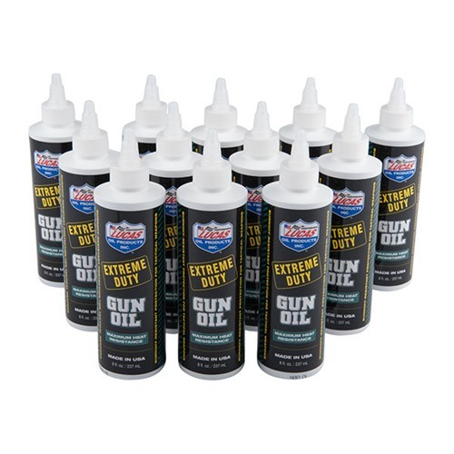 Used and recommended by major firearms manufacturers, Lucas Extreme Duty Gun Oil is specially formulated for high volume, high heat and friction firearms and was designed for full auto firearms, SBRs and suppressors as well as semi-auto rifles, shotguns and pistols. It offers superior burn-off, shock and heat resistance, unlike any other multi-purpose gun oil. A unique additive keeps the oil from running and migrating while the polymeric film protects from rust, wear and moisture and resists carbon, lead and copper fouling and dramatically reduces wear during all shooting conditions. Applying Lucas Extreme Duty Gun Oil to bores, bolt carriers and gas pistons makes clean-up of powder residue, copper and carbon fouling a much easier task. Apply a light coat to suppressor baffles, mounts, muzzle breaks and flash hiders to resist carbon build up and to make cleaning quicker and easier. It neutralizes acids from fingerprints and resists drying for long term storage use. Developed for demanding lubrication during hard use. Extreme working temperature range of -38°F to 400°F. Great for ultra-sonic cleaner use for small or bulk parts lubrication. Superior blow back resistance, keeping oil out of your face and off your glasses.