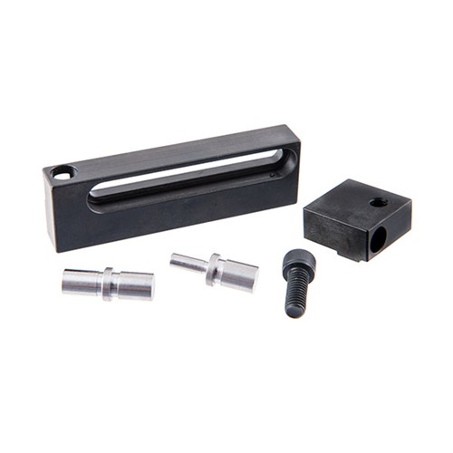 Der aus präzise bearbeitetem Stahl gefertigte Block akzeptiert eine große Auswahl an Hammer- und Sear-Pins, die für verschiedene Handfeuerwaffen und Gewehre geeignet sind. Der gefräste Einstellblock gleitet in einem geschlitzten Kanal, sodass der Abstand der Pins genau auf die individuellen Rahmen und Empfänger eingestellt werden kann.