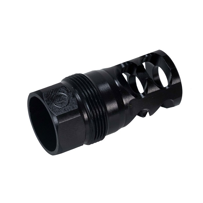Elevate your shooting experience with the cutting-edge PWS FRC square compensator, designed to be a suppressor host for the Rearden Atlas suppressor mounting system, accommodating popular suppressors like the BDE 762. Crafted with precision and innovation, this compensator stands as a premier selection for a diverse range of shooting scenarios. The PWS FRC compensator sets itself apart by prioritizing recoil reduction as its primary function while simultaneously excelling at flash suppression. Its distinctive 2-port design skillfully redirects flash away from optics and the line of sight, ensuring an unobstructed view and minimizing overpressure. When paired with suppressors, the FRC boasts a tight lockup and maintains it through hard shooting cycles. Mounted precisely, the FRC becomes a crucial component in your rifle's comprehensive recoil management system. By effectively mitigating recoil and muzzle rise, this compensator enables swift follow-up shots, ultimately delivering improved shooter control and accuracy. Choosing the PWS FRC provides the best of both worlds—superior recoil management and effective flash suppression—making it an indispensable asset for any shooter looking to enhance their shooting prowess and overall experience on the range or in the field. Select between flat shouldered option, for traditional rifle barrels, or tapered shoulder, for barrels with a tapered shoulder behind the muzzle threads.