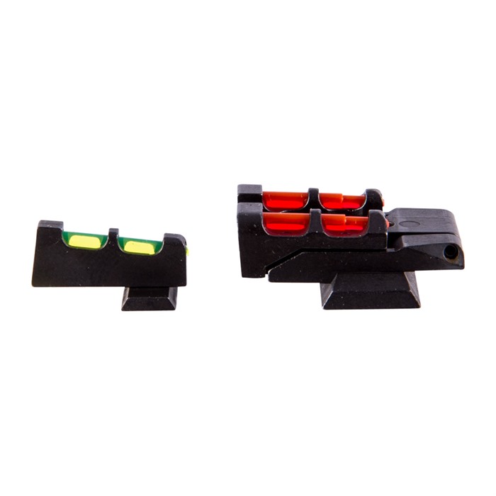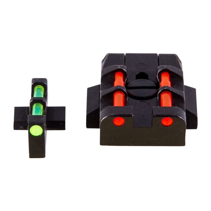 The HIVIZ Adjustable Sight Set for S&W M&P pistols gets you on target faster and more effectively than standard plain black or even white dot sights. An elevation adjustable rear sight, combined with bright fiber optic dots on the front and rear, enhance your accuracy in almost any lighting conditions. Constructed with rugged steel sight bodies, the Adjustable Sight Set for the S&W M&P features HIVIZ’s interchangeable LitePipe system so you can quickly and easily change the color of the fiber optic inserts in your pistol to suit your needs. Customizable so you can have the color combination in your sight picture that works best for your eyes Front sight comes with green, red & white LitePipes Rear sights includes green, red & black LitePipes. This set has a front sight height of 0.310 which will work on most suppressors. The HIVIZ Adjustable Sight Set fits all Smith & Wesson M&P full-size and PRO models in 9mm, 40 S&W and .45 ACP, including long-slide M2.0 models. Does not fit CORE models.