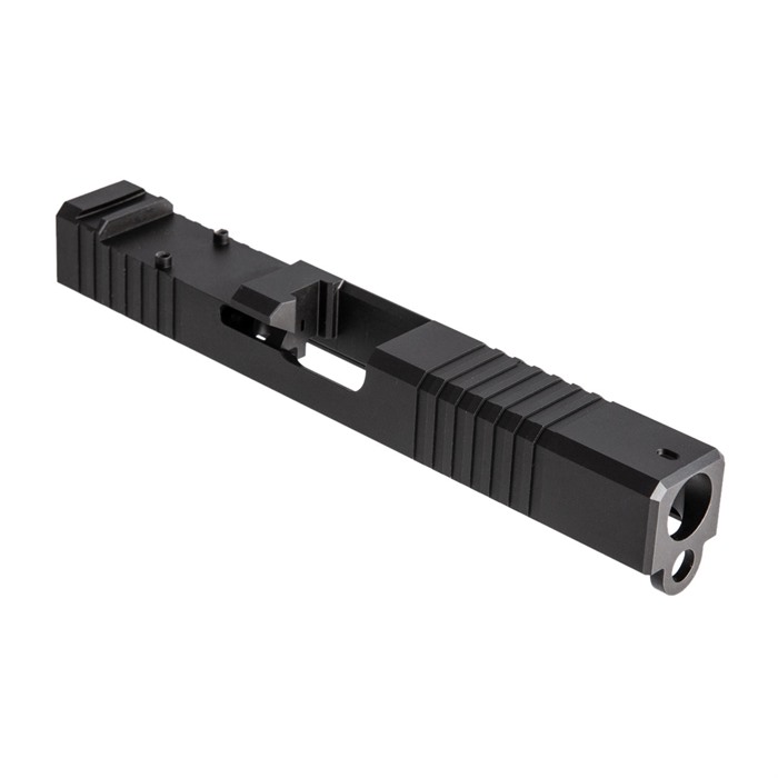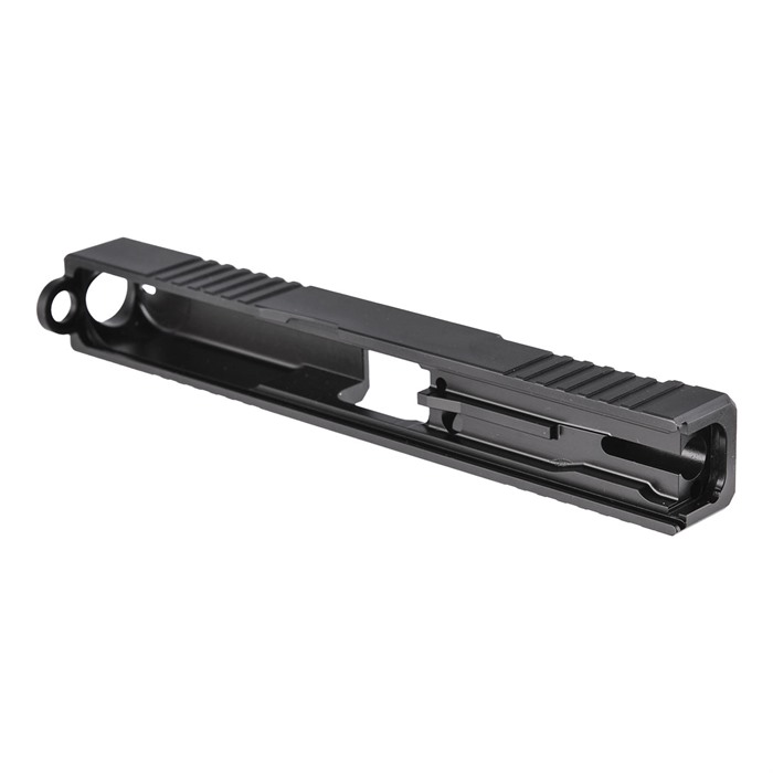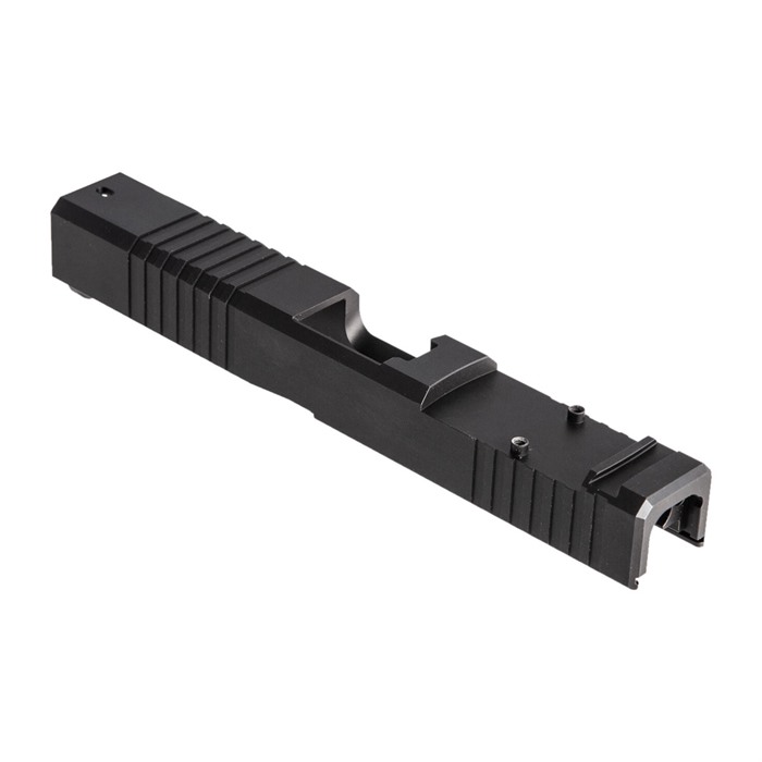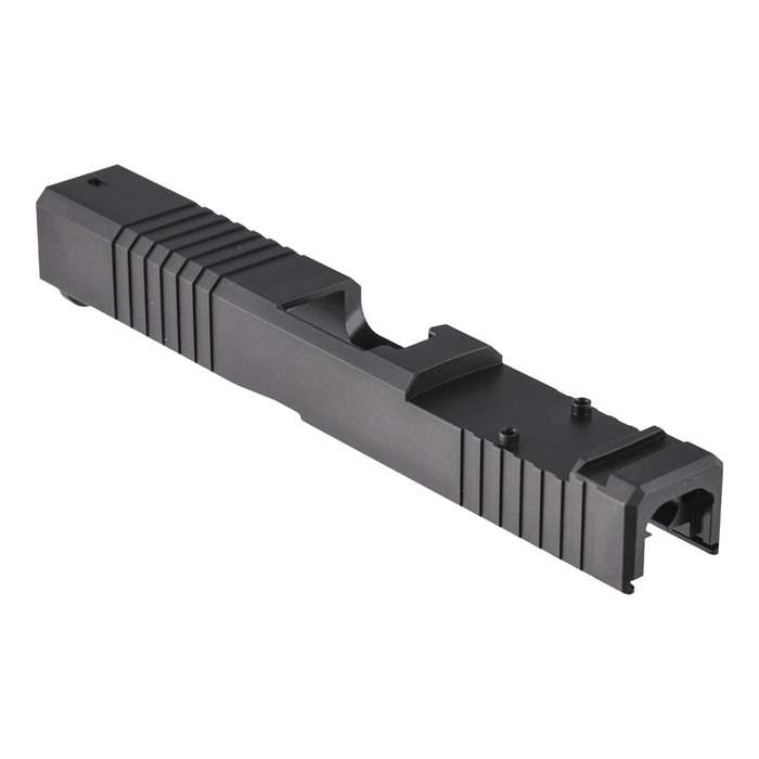 Our RMR Slide for Glock® 17 Gen3 pistols features distinctive, wraparound front cocking serrations that aid in manipulating the slide to check the chamber or clear a jam. (OK, we’ll admit it: the serrations just look cool, too.) It also comes with a pre-cut slot for easy, secure mounting of a Trijicon RMR or Holosun red dot sight. All RMR Slides also have standard Glock® factory front and rear sight dovetails for "iron" backup sights. To get proper co-witnessing with the RMR, you will need to also install suppressor-height iron sights. You can also get your Brownells RMR Slide for Glock® 17 Gen3 with a "window" cutout on top that enhances airflow to keep the barrel cool - ideal for hard-working action competition pistols. Plus, if you have an upgraded barrel with a contrasting finish or a unique exterior pattern (fluting, spirals, "flames," etc.) the window lets you show it off a bit! Each RMR Slide for Glock® starts life as a billet of 17-4 stainless steel that is machined to Glock® factory specifications inside, so it’ll fit factory frames and accept factory or aftermarket barrels and Gen3 internal parts. Slides are heat-treated to Rc 41-44 on the Rockwell C scale for added surface hardness and wear resistance. You can get your RMR slide in one of 3 finishes: a wear-resistant basic Black Nitride, or a thin, extremely tough, physical vapor deposition (PVD) coating in Bronze or Flat Dark Earth (FDE). Fits Gen3 Glock® 17 pistols & clones Machined from corrosion-resistant 17-4 stainless steel billet Trijicon RMR mounting slot Also accepts Holosun HE508T, HS507C & HS407C red dot sights Plus factory front/rear sight cuts Available with distinctive top Window cutout or traditional Solid top A Brownells RMR Slide is the ideal upgrade for your factory Glock® 17 Gen3 pistol OR the perfect "top half" for a brand-new custom gun built on a Polymer80 80% frame. Brownells Gun Tech™ Note: Channel liner required for these slides. Channel liner is a press fit and requires a tool to install. We recommend #777-100-017. Includes patented optic cut technology pioneered by ZEV Technologies. Patent No. RE47335