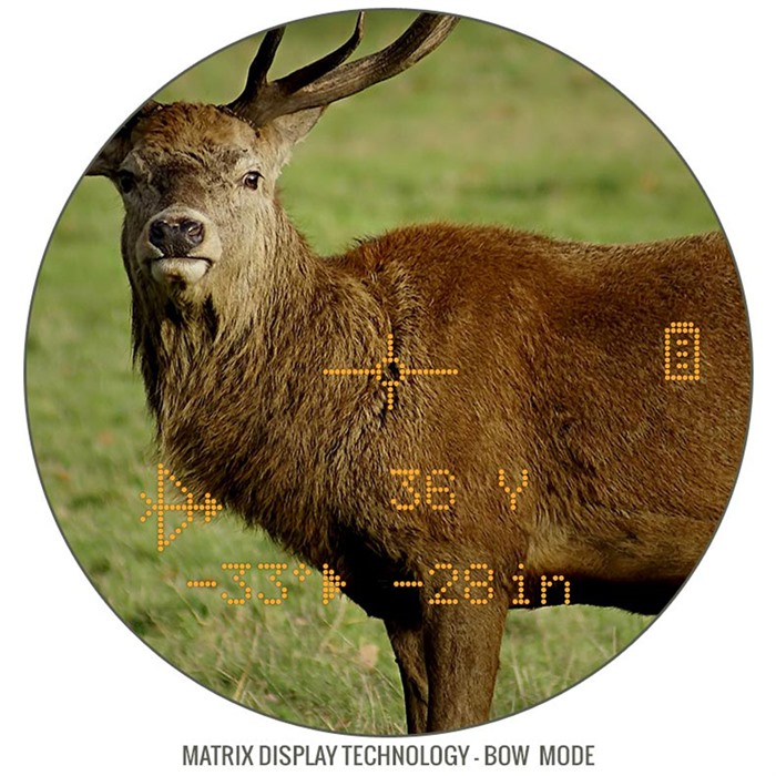 Aktiviere den Laser-Entfernungsmesser mit einem Knopfdruck, und die genaue Entfernung zu deinem Ziel – von 10 bis 1.760 Yards – wird angezeigt. Der ARC Bow Mode und der ARC Rifle Mode sind integriert. Der ARC Bow Mode liefert die "shoots-like" horizontale Entfernung; während der ARC Rifle Mode präzise Informationen über Geschossabfall und Haltepunkt bietet.