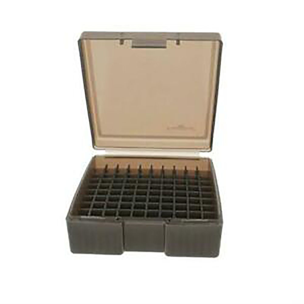 See-through plastic ammo boxes make storing and identifying your reloaded ammunition a snap. Available in two different colors and twelve different sizes to fit most calibers. Our system allows you to get organized and stay organized. Our ammo boxes fit a full variety of calibers, many more than the examples mentioned.