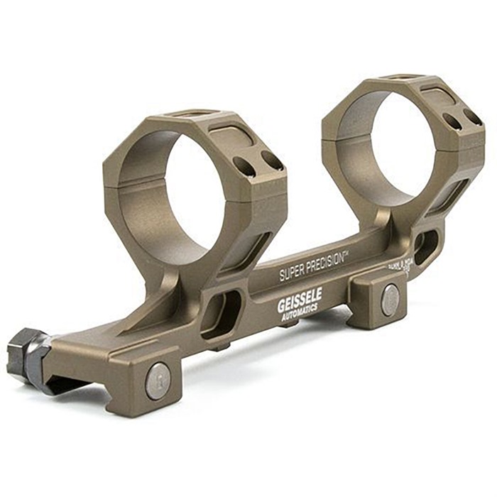 Ein weiterer Vorteil der Bearbeitung aus einem einzigen Stück Aluminium ist, dass Geissele in der Lage ist, eine Montage mit Kappenpositionen zu schaffen, die für eine Vielzahl von Zielfernrohren geeignet sind. Alle Montagen sind in 0 und 20 MOA Neigungsoptionen erhältlich und entweder in Schwarz (Typ 3 Hartanodisierung) oder DDC (Desert Dirt Color) Typ 3 Hartanodisierung.