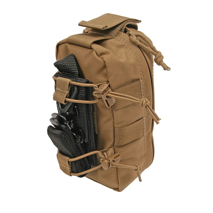 Die Pouch besteht aus 500D Cordura® Nylon und lässt sich mit den zwei beiliegenden MALICE® Clips an jedem MOLLE/PALS-Webband befestigen. Sie wurde entwickelt, um folgende Artikel zu transportieren, kann aber auch eine Vielzahl anderer Gegenstände sicher verstauen: