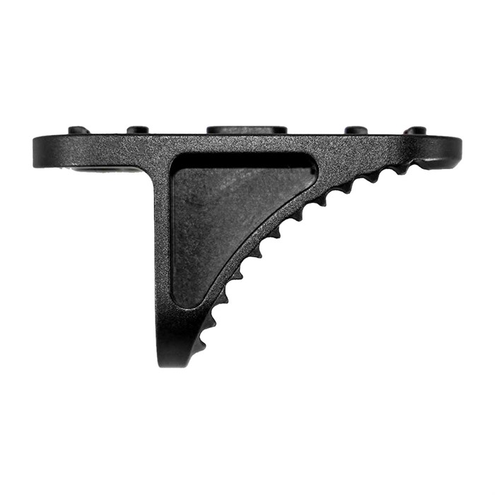 Der GripStop ist aus robustem 6061 T6 Aluminium gefertigt und mit einer MilSpec anodisierten Oberfläche versehen. Er ist kleiner als ein vertikaler Griff, aber größer als ein Handstop. Leicht und stromlinienförmig, war der GripStop das erste Produkt, das die richtige Schießergonomie adressierte.