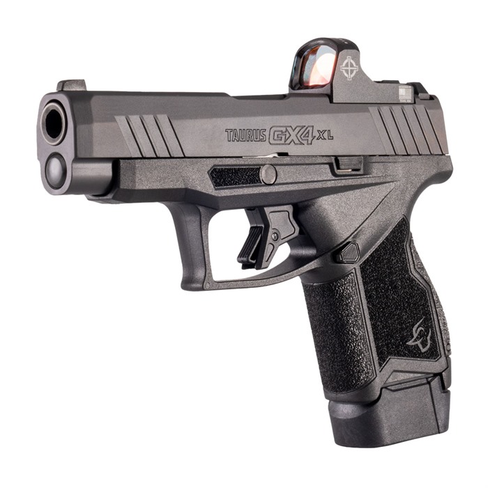 NEWLY DESIGNED, LONGER SLIDE Longer slide adds 1 inch of length when compared to the GX4—increasing muzzle velocity and sight radius, making it easier to maintain accuracy. T.O.R.O. (TAURUS OPTIC READY OPTION) SLIDE Direct thread, no plate system accommodates today’s most popular red dot optics including: Shield RMSc Holosun HS507K X2 Sightmark Mini Shot A-Spec M3 Trijicon RMR® cc Red Dot (with adapter plate P/N: 10028170) DLC-COATED STAINLESS STEEL BARREL Ensures reduced friction and greater wear and corrosion resistance no matter the elements—enhancing accuracy and overall performance. TWO BACKSTRAP OPTIONS Standard backstrap profile features a slight palm swell. Those who favor a higher wrist position for natural point-of-aim can install the included high-swell backstrap. CAPACITY 10-, 11- or 13-round magazine options for increased versatility and added peace of mind. SIGHT SYSTEM A blackout steel serrated drift adjustable rear sight and fixed (white dot) front sight promote fast target acquisition when not running a red dot. FLAT FACE TARGET TRIGGER Delivers accuracy and predictability courtesy of its crisp, precise sear break and the pleasingly short and tactile reset that is fundamental to quick, on-target follow-up shots. GAS NITRIDE COATED CARBON STEEL SLIDE Carry-friendly carbon steel slide boasts a gas nitride coating to maximize slide surface hardness that shooters can depend on in any application.