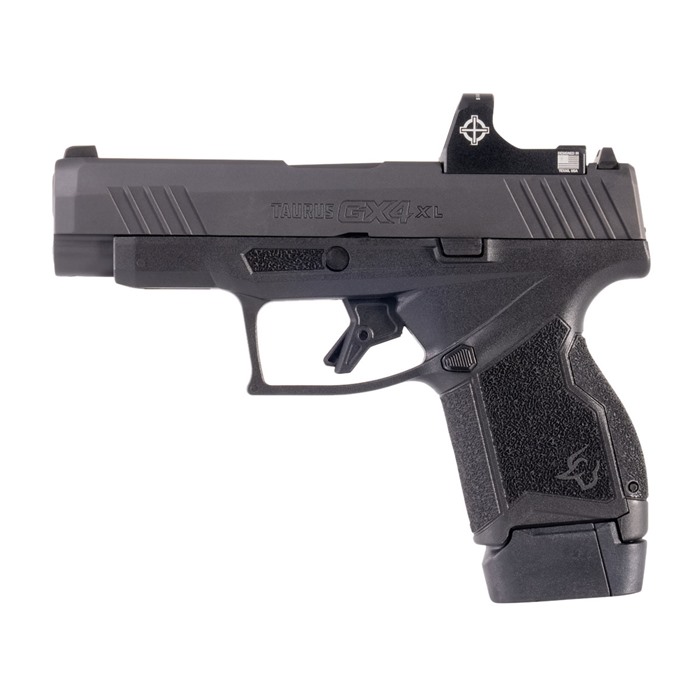 NEWLY DESIGNED, LONGER SLIDE Longer slide adds 1 inch of length when compared to the GX4—increasing muzzle velocity and sight radius, making it easier to maintain accuracy. T.O.R.O. (TAURUS OPTIC READY OPTION) SLIDE Direct thread, no plate system accommodates today’s most popular red dot optics including: Shield RMSc Holosun HS507K X2 Sightmark Mini Shot A-Spec M3 Trijicon RMR® cc Red Dot (with adapter plate P/N: 10028170) DLC-COATED STAINLESS STEEL BARREL Ensures reduced friction and greater wear and corrosion resistance no matter the elements—enhancing accuracy and overall performance. TWO BACKSTRAP OPTIONS Standard backstrap profile features a slight palm swell. Those who favor a higher wrist position for natural point-of-aim can install the included high-swell backstrap. CAPACITY 10-, 11- or 13-round magazine options for increased versatility and added peace of mind. SIGHT SYSTEM A blackout steel serrated drift adjustable rear sight and fixed (white dot) front sight promote fast target acquisition when not running a red dot. FLAT FACE TARGET TRIGGER Delivers accuracy and predictability courtesy of its crisp, precise sear break and the pleasingly short and tactile reset that is fundamental to quick, on-target follow-up shots. GAS NITRIDE COATED CARBON STEEL SLIDE Carry-friendly carbon steel slide boasts a gas nitride coating to maximize slide surface hardness that shooters can depend on in any application.