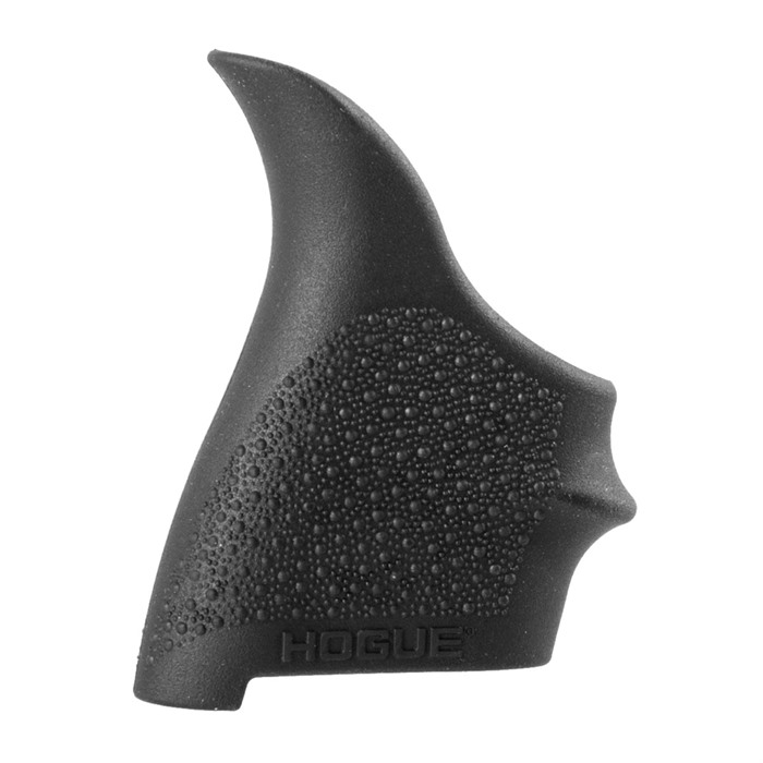 The new grip sleeves are designed to fit specific polymer pistols now on the market. The Beavertail Grip Sleeve line has been engineered with models for precision fits on specific firearms. The initial offerings in this series has sleeves designed for perfect fits on three sizes of polymer firearms. While each sleeve has been created for a precise fit on specific polymer framed firearms, they also alternatively fit many other similarly sized firearms with a fully functional and aesthetic fit. The Beavertail Grip Sleeves are installed by slipping them over the frame of the firearm until seated into perfect position. Once installed, the HandALL sleeve provides a single finger groove for instinctive handling of the firearm. The finger groove leads into a gentle palm swell that has been carefully designed to fit naturally in the hand. The beavertail built into the grip sleeve rises high along the backstrap of the frame giving full rubber contact with the hand allowing a higher hand-placement on the grip without the fear of the slide biting the skin between the thumb and the trigger finger. In addition to protection and comfort, the beavertail also cushions the hand during recoil. The HandALL is built from a long-lasting durable thermoplastic elastomer compound. This rubber ages very gracefully and keeps a firm, tacky feel throughout the life of the grip. It will not harden, split or crack with age or usage. The grip sleeve is textured with Hogue’s familiar Cobblestone™ texture, a series of small circular bumps that provide an efficient non-slip, non-irritating grip on the rubber.