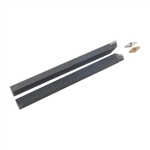 Die Werkzeugkits enthalten gehärtete Stahlwerkzeughalter und Hochgeschwindigkeitsstahl-Einsätze für das Drehen, Gewinden, Profilieren und Abtrennen. Die Einsätze sind T-15 Hochgeschwindigkeitsstahl (HSS), gehärtet auf Rc 65-67 und anschließend auf allen Seiten fertig geschliffen. Sie bieten hervorragende Leistungen bei niedrigen Geschwindigkeiten, präzise unterbrochene Schnitte und eine glatte Oberfläche auf Edelstahl, Inconel, Monel, exotischen Metallen und Kunststoffen.