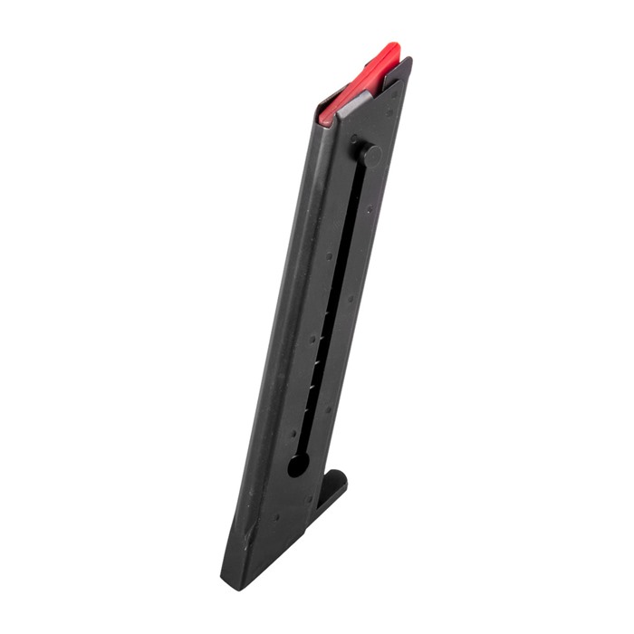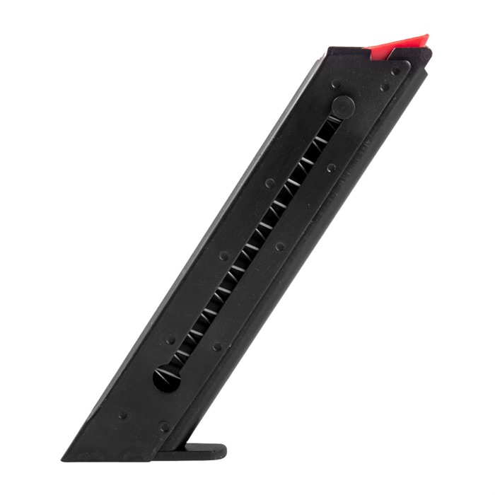 High Standard .22 LR 10-Round replacement magazines are carefully manufactured to the correct specifications for your High Standard pistol. With an improved feed lip design, High Standard .22 LR 10-Round replacement magazines will deliver smooth, reliable performance. All-steel mag tube with welded-on steel base plate Blued finish matches your classic pistol High-visibility red plastic follower instantly verifies mag "loaded" vs "clear" status May require minor fitting to the ejector of your particular pistol to ensure full insertion into magwell A semi-auto pistol is only as reliable as its magazines, so why compromise the performance of your classic High Standard pistol? With a few extra .22 LR 10-Round replacement magazines on hand, you can spend less time reloading or trying to coax old, worn out mags to feed properly, and more time shooting. NOTE: Duramatic 10-round magazine fits original High Standard Duramatic pistol, as well as Plinker and Sears Model 80 - all chambered in .22 LR.