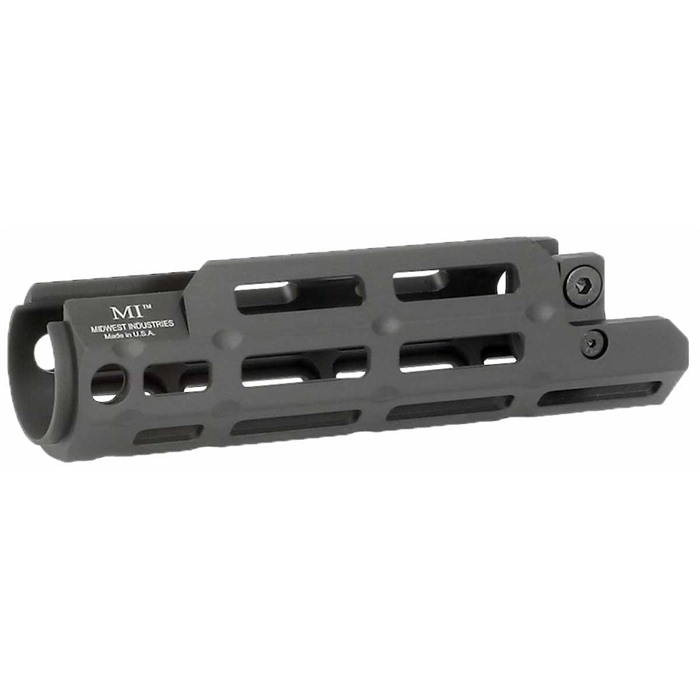 The MP5 is one of the more popular semi-automatic sub gun designs on the market, but finding aftermarket upgrades for the guns can be difficult at times. The Midwest Industries HK MP5M Drop-In Handguard offers owners the only enhancement they need for their firearm. The Midwest Industries HK MP5M Handguard is made from a single piece of 6061 aluminum, which is finished with a black hard-coat anodizing that ensures protection against dings, scratches and other environmental hazards. Features 15 full M-LOK attachment points Diameter: 1.6 inches Weight: 4.8 ounces 922R compliant part The Midwest Industries HK MP5M Drop-In Handguard also features two quick-detach sling-swivel sockets and all of the tools needed for installation.