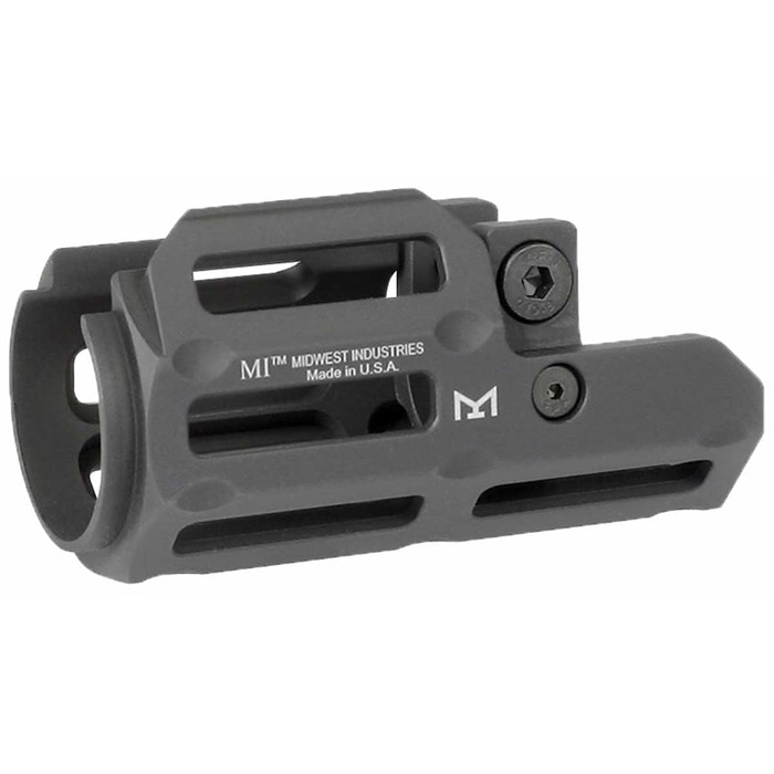 The Heckler & Koch MP5 is one of the iconic submachine gun designs of the 20th century, and its design has spawned numerous semi-automatic variants and clones. Now, you can customize your semi-auto MP5 with the Midwest Industries HK SP89M Drop-In Handguard. The Midwest Industries HK SP89M Drop-In Handguard is a one-piece design that's made from lightweight 6061 aluminum and features a black hard-coat anodized finish that provides protection against wear and the elements. The top rail of the handguard features mil-spec Picatinny attachment points that enable the addition of optics and accessories. Features nine M-LOK slots Weight: 2.6 ounces Diameter: 1.6 inches 922R compliant The Midwest Industries HK SP89M Drop-In Handguard is completely manufactured in the USA and includes all necessary installation tools and one 5-slot M-LOK rail segment.