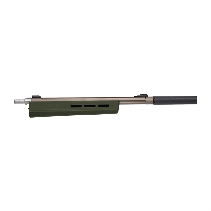 The Hunter X-22 Takedown Forend is intended for use with additional barrels on rifles currently equipped with the Hunter X-22 Takedown Stock. Made from high quality reinforced polymer, the X-22 Takedown Forend features a reversible barrel tray, ensuring proper fit for factory pencil profiles as well as heavy bull barrels with up to 0.920" outer diameter. It features multiple M-LOK® slots for accessory attachment and an adjustable barrel-tensioning shim in the forend for setting barrel preload (the barrel may also be free-floated). It also includes a dimpled drill point at the bottom of the forend for installation of sling swivel studs for bipod or sling swivel use. FEATURES Compatible with the Hunter X-22 Takedown Stock Easy exchange of different barrels for the same rifle Reversible barrel tray accepts factory and aftermarket barrels up to 0.92” OD Adjustable barrel-tensioning shim in the forend for setting barrel preload (the barrel may also be free-floated) M-LOK® slots on forend sides and bottom for a variety of accessory and sling mounting options Dimpled drill point to install optional sling swivel studs such as the Sling Swivel Stud, MAG819 Reinforced polymer construction for strength and durability Made in the U.S.A.