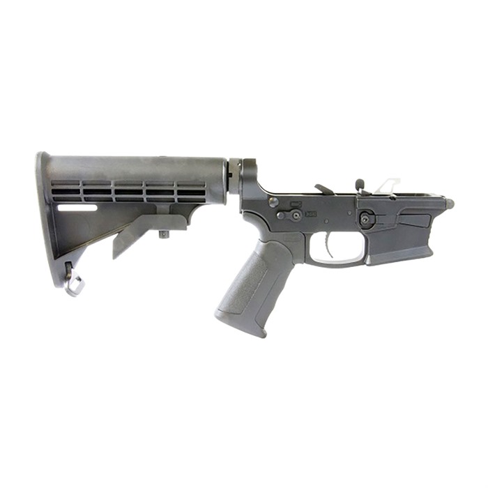 You don't have to deal with a mil-spec trigger in your dedicated gun build, even if you're planning to go the easy route with a complete lower receiver. Heck, you don't even have to stick with a company's pre-selected trigger choice! This KE Arms KE-9 Complete Lower Receiver gives you two different trigger options, so you can choose whether or not you prefer the company's DMR or SLT-1 trigger in your finished gun! Best of all, this lower comes with an enhanced X-Tech tactical pistol grip and an M4-style carbine stock. Each KE Arms KE-9 Lower Receiver is machined at the company's facility from 7075 billet aluminum. The company holds its receivers to tight tolerances within military specifications, so all mil-spec components will function in this lower, and the receiver is compatible with all mil-spec 9mm upper receivers. To enhance its durability, the receiver is treated with an all-black, Class 2 hard-anodized finish. The KE Arms KE-9 Lower Receiver does not feature last-round bolt hold-open, unless you have a linkage system incorporated into your upper receiver. The company warns users that you can use the standard bolt catch to manually lock the bolt to the rear, but the Glock magazine followers will not actuate the catch. Some 9mm upper receivers will include this linkage.