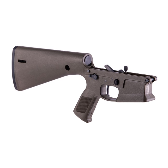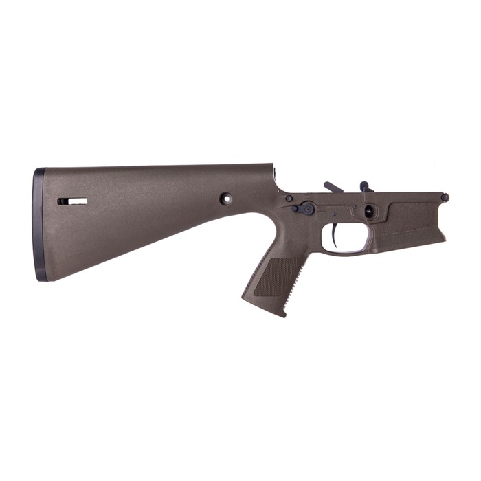 What makes this lower different than its counterparts? The answer is simple… the KE Arms KP-15 is a monolithic polymer AR-15 style lower receiver made from injection molded, 30% glass-filled nylon. Its unique design incorporates the buffer tube, pistol grip, trigger and a 13-inch (LOP) buttstock into the receiver as integral components. The result is an affordably priced, lightweight lower receiver. This complete model includes the KE Arms DMR Trigger, with 4.5lbs pull. The KE Arms KP-15 lower receiver uses a carbine buffer and spring. The take down and pivot pins have built-in detents, which increases durability by eliminating the spring and detent holes. The buffer detent (should you choose to use it) is held in place with a 5/64” roll pin. The hammer pin area is wider for durability; standard AR-15 hammer pins can still be used, though the KE Arms longer hammer pin is recommended for customers preferring a flush pin for aesthetic reasons. The safety selector spring and detent have been designed to load from the top, then the selector is slid over them. (Standard selectors can work but removing them can be particularly difficult. KE Arms recommends the use of their designated mil-spec selector or ambi selector to make removal easier. Follow the manufacturer’s assembly guide for further instructions.) Weight: 1.704 lbs. Compatible with all Mil-Spec fire control groups Compatible with cassette style match triggers Flared magwell Available in black and flat dark earth MLOK Slots at rear of stock for sling attachment Pre-drilled in front for QD socket inserts Uses a standard bolt catch. Cannot accept the PDQ lever. The PDQ lever is exclusive to the WWSD complete rifle. Do NOT use anything other than standard carbine buffers and round springs or the JP SCSS in the KP-15. WARNING!: This item is legally classified as a receiver. You Must be 21 years old to purchase this item and a resident of the same state your transferring dealer is licensed in. The KE Arms KP-15 is compatible with standard AR-15 uppers in calibers including .223/5.56mm NATO, .300 Blackout, 6.5mm Grendel and 6.8mm SPC. The lower receiver is also compatible with 9mm blowback systems, when used with a minimum buffer weight of 5.4oz (carbine). Failure to use a minimum buffer weight of 5.4oz can damage the lower. CERAKOTE: If you intend to Cerakote your KP-15 the manufacturer recommends the bake should be done at low temperatures (<190 Degrees F) and with an upper in place to prevent warping. WARRANTY: The KE Arms KP-15 has a lifetime warranty for normal use. If the receiver breaks through misuse or neglect, KE Arms will replace it ONCE for $65.00. NOTE: Not recommended for .458 SOCOM, .50 Beowulf or .50 BMG. Please contact KE Arms if you intend to register your KP-15 lower receiver as an NFA weapon.