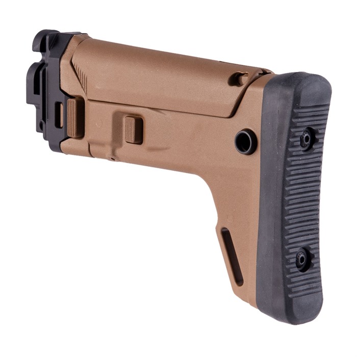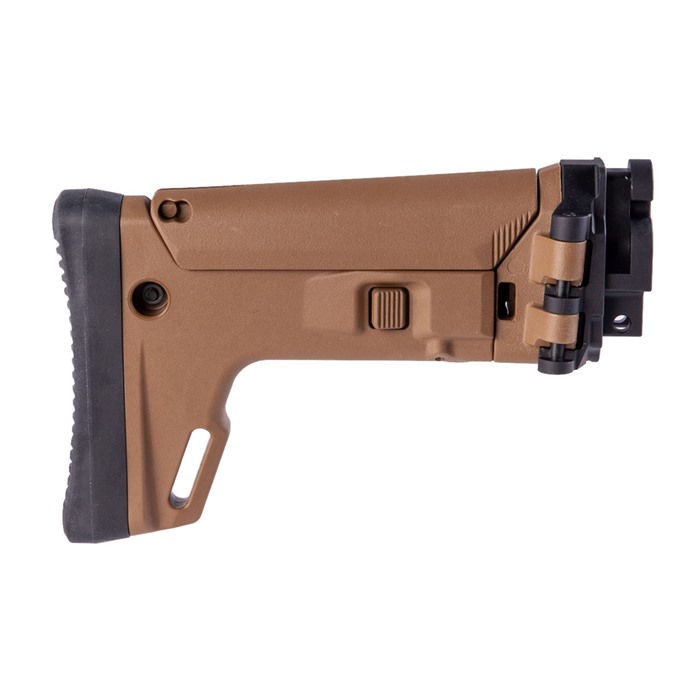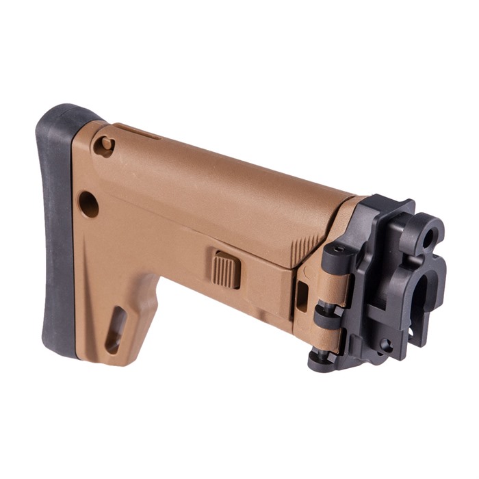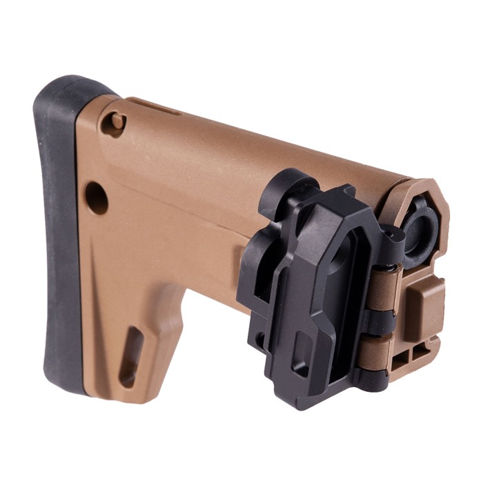 The new Kinetic Stribog Stock kit takes the amazing Magpul designed Masada (ACR-E) stock system and outfits it with the KDG Stribog adaptor to allow for direct use with your Stribog firearm. The kit ships fully assembled with adapter already on the stock for drop in use. Features: Side Folding with Spring lock tension 7 telescoping adjustable positions Adjustable Cheek Riser, QD Cup (Can be used on either side of the stock) Watertight CR123 battery compartment Note: KDG does not warranty wear on your firearm from wear/tear and use whether it be from factory parts or aftermarket parts from KDG or other manufacturers.